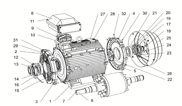 13. labyrinth seal for 2 pole,V ring for 4-8 poles