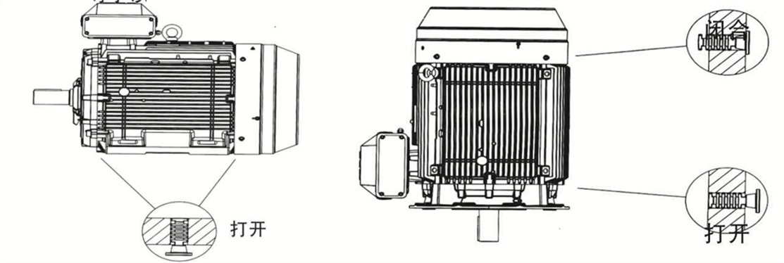 如果在非常濕潤或潮濕的環(huán)境下,特別是在斷續(xù)負載下操作電機,則應設(shè)置排水孔。根據(jù)電機安裝方法,**相應的IM標號,用戶應在訂貨時予以說明。